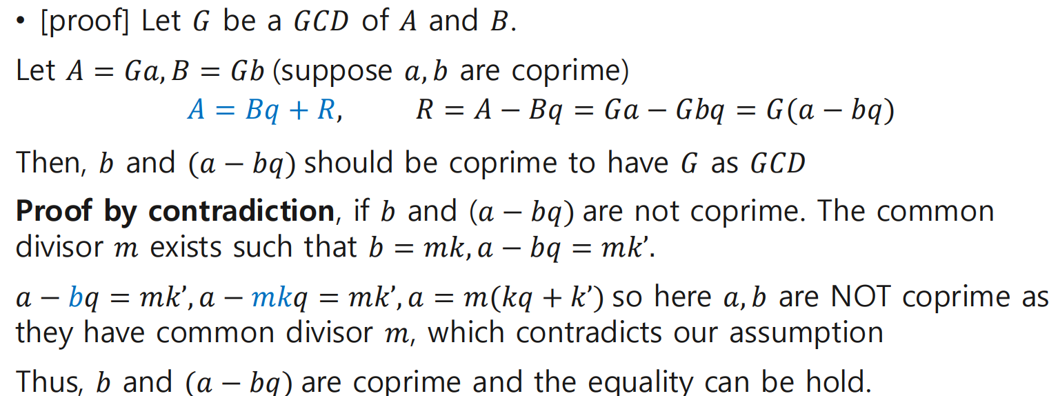 4. gcd(b, a−bq)=1임을 보이는 반증법 proof by contradiction