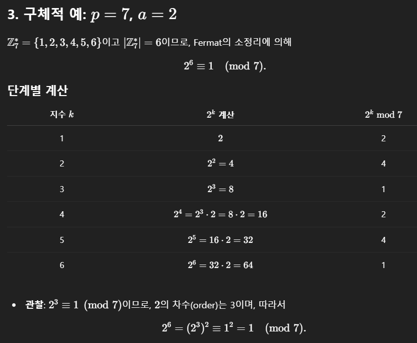 이 정리들로 “큰 거듭제곱을 모듈로(n) 연산한 뒤 나머지가 무엇인지” 혹은