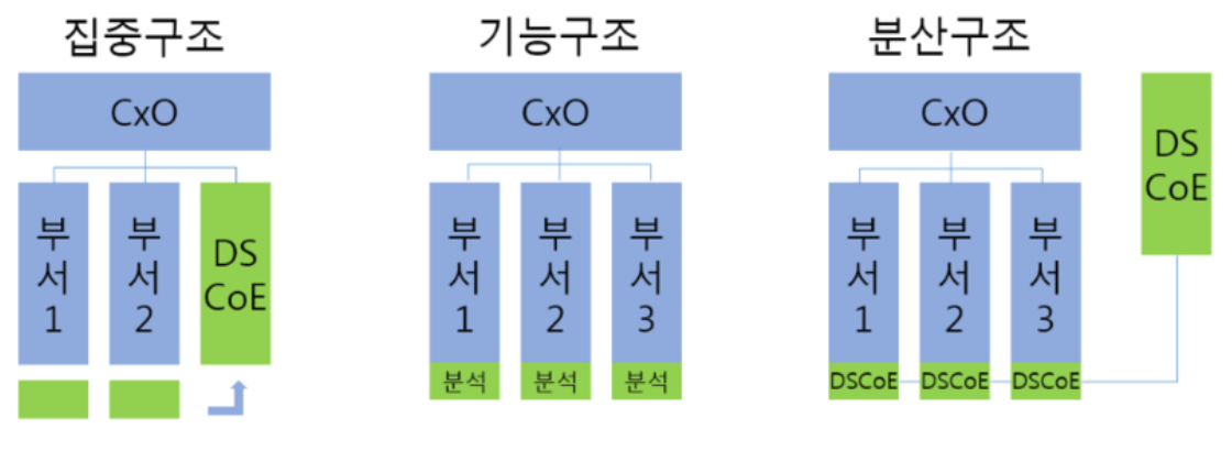 - 데이터 분석 업무 수행 주체에 따른 조직구조