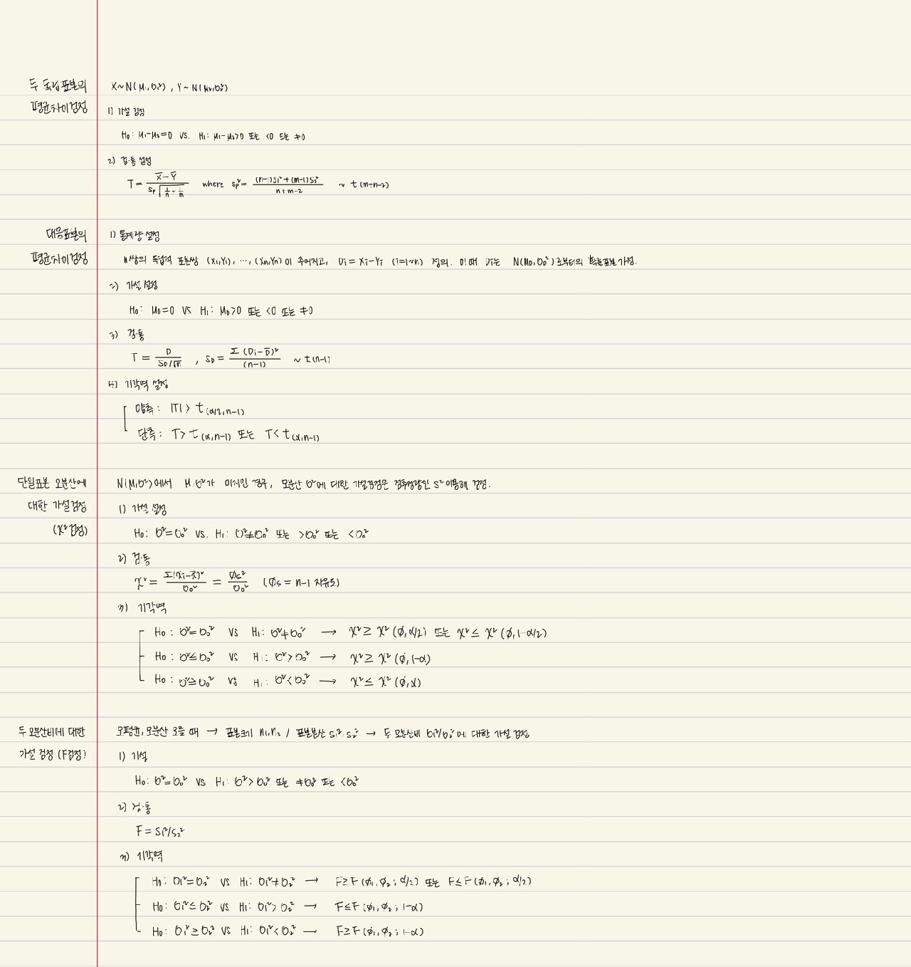 - 검정통계량 및 표본분포의 결정